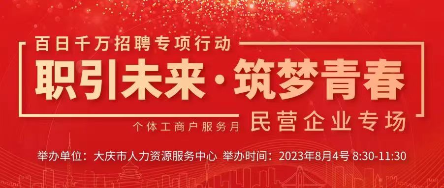 為全面落實穩(wěn)就業(yè)、保就業(yè)工作任務(wù),促進高校畢業(yè)生、廣大進城務(wù)工人員、城鎮(zhèn)失業(yè)人員、低收入人口等重點群體高質(zhì)量、充分就業(yè),解決企業(yè)用工需求。8月4日上午,由大慶市人力資源和社會保障局主辦,大慶市人力資源服務(wù)中心承辦的“職引未來 筑夢青春”——百日千萬招聘專項行動個體工商戶服務(wù)月?民營企業(yè)專場招聘會,在市人力資源服務(wù)中心一樓招聘大廳成功舉辦。